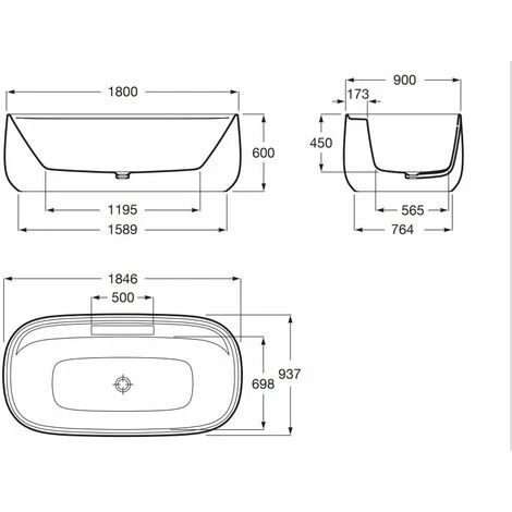 Longueur: 1846 mm. Largeur: 937 mm. Hauteur: 600 mm.