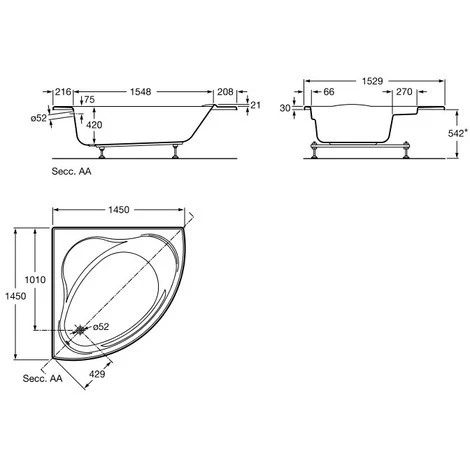 Dimensions : 1450x1450mm Hauteur intérieure : 420mm