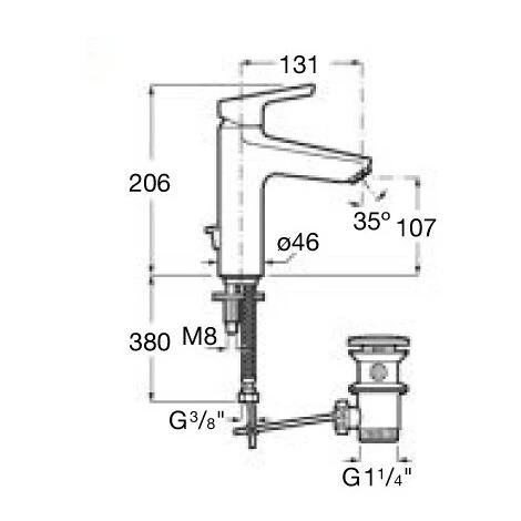 Lavabo monotrou Mezzo livré avec vidage automatique en laiton et – flexibles d’alimentation. Ouverture sur l’eau froide, débit limité à 5 l/min.