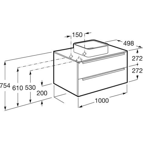 Longueur 1000 mm Largeur 498 mm Hauteur 554mm – Pour vasque à poser