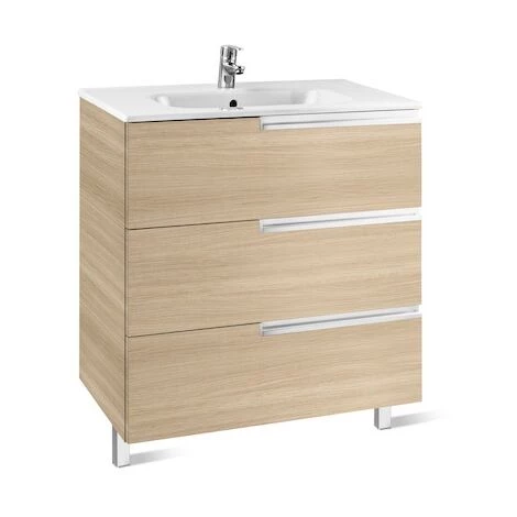 Ensemble meuble 3 tiroirs avec fermeture amortie et lavabo en porcelaine.