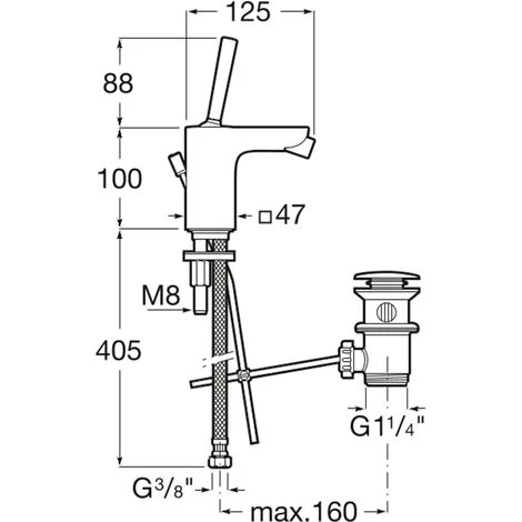 Mitigeur bidet PALS avec vidage automatique tirette – ChromĂ© – Roca