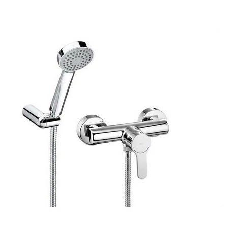 Mitigeur de douche extérieur avec douchette, flexible de 1,50 mètre et support de douche articulé chromé L20. Débit : 6l/min à 3 bars. Produit durable. Type de cartouche : céramique. Type d installation : mur. Simplement actuel, élégant et durable. La série L20 fait partie des collections innovantes de robinets Roca qui offrent une ouverture frontale pour l eau froide pour de plus grandes économies d énergie.