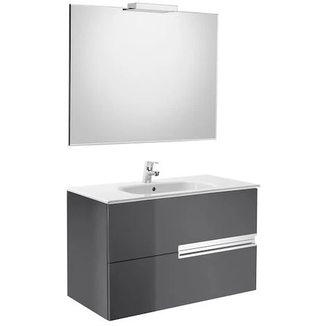 Pack meuble 2 tiroirs avec fermeture amortie et lavabo en porcelaine, miroir et applique de 33W