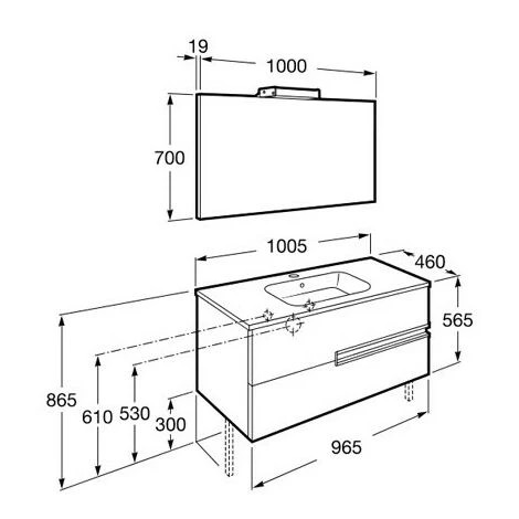 Longueur 1000 mm Largeur 460 mm Hauteur 565 mm