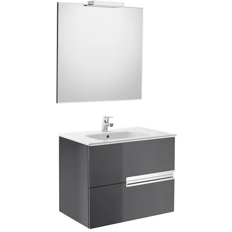 Pack meuble 2 tiroirs avec fermeture amortie et lavabo en porcelaine, miroir et applique de 33W