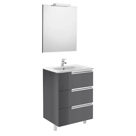 Pack meuble 3 tiroirs avec fermeture amortie et lavabo en porcelaine, miroir et applique de 33W