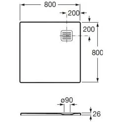 ROCA Receveur TERRAN 800x800x28 Vidage Et Grille Inox – Blanc