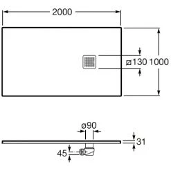 ROCA Receveur De Douche En Résine TERRAN – 2000x1000x31mm – Blanc