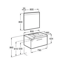 Pack Unik PRISMA 900 Meuble 1 Tiroir Lavabo à Droite Miroir LED-Gris – Roca
