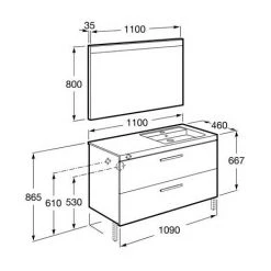 Pack Unik PRISMA 1100 Meuble 2 Tiroirs Lavabo à Droite Miroir LED – Gris Anthracite – Roca