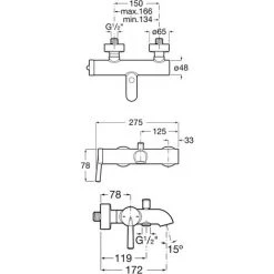 Mitigeur Bain-douche PALS Mural Avec Inverseur Automatique – Chromé – Roca – A5A026DC00