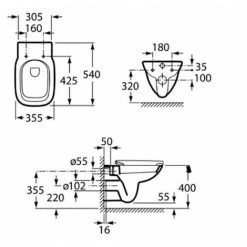 ROCA Pack Cuvette WC Susp DEBBA SQUARE Ss Bride/frein Chute – Blc
