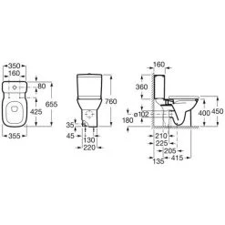 ROCA Pack WC Debba SQUARE S.H, 3/6L Cuvette Rimless Frein Chute – Blanc
